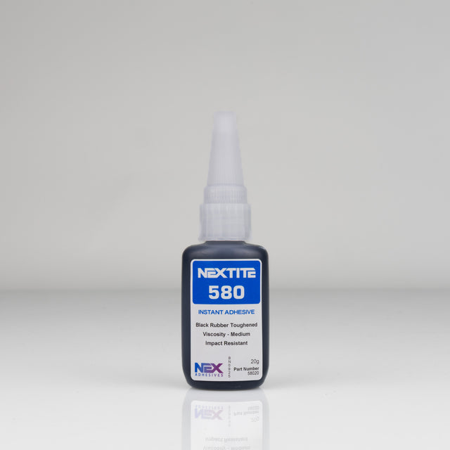 NEXTITE 580 has been designed as a rubber toughened instant adhesive for improved impact resistance, shear and peel strengths. It is ideal for industries and tasks that require a reliable flexible adhesive with fast bonding and high strength. It is perfect for bonding two materials that expand and contract at different rates as it handles the thermal expansion well. It is suitable for jobs that require a longer fixture time to allow for alignment of parts.